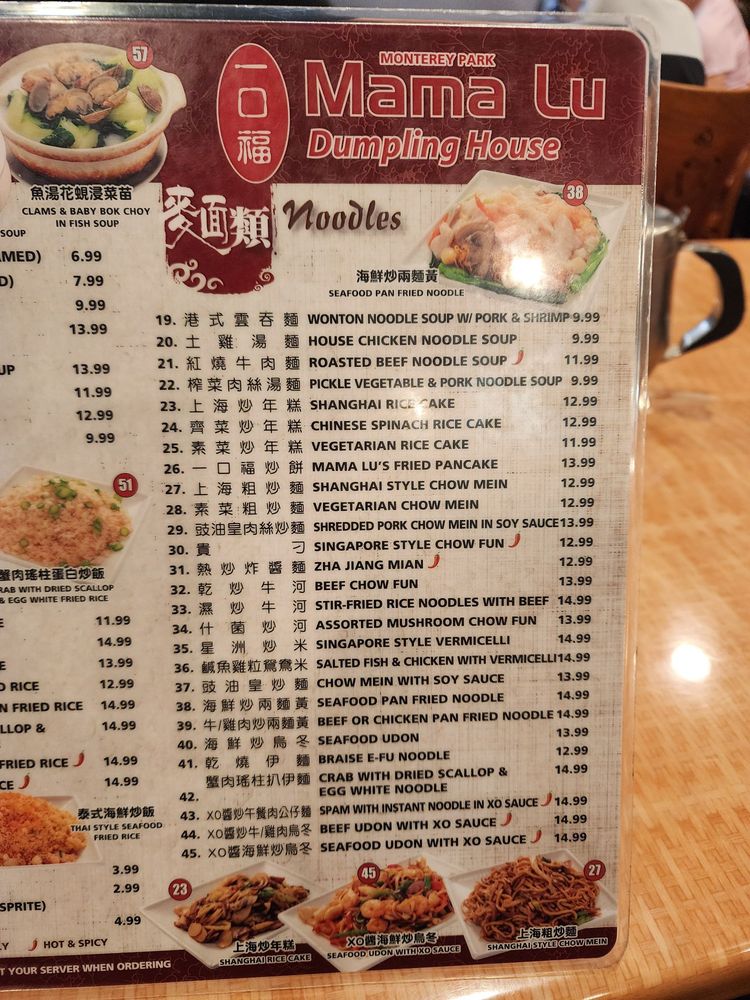 Mama Lu’s Dumpling House, located in Monterey Park, CA, offers a wide range of amenities like delivery, takeout, vegan options, and wheelchair accessibility. Online reviews rave about the flavorful dishes, generous portions, and reasonable prices. Customers recommend trying the pork chop, egg tofu, Shanghai style chow mein, and xiao long bao. The cozy atmosphere and attentive staff make dining a pleasant experience. With a variety of options beyond just dumplings, Mama Lu’s is a must-visit spot for authentic Chinese cuisine. Don't miss out on the sautéed green beans, spicy wontons, and crispy noodles. Overall, Mama Lu’s Dumpling House is a go-to destination for delicious, affordable Chinese food.